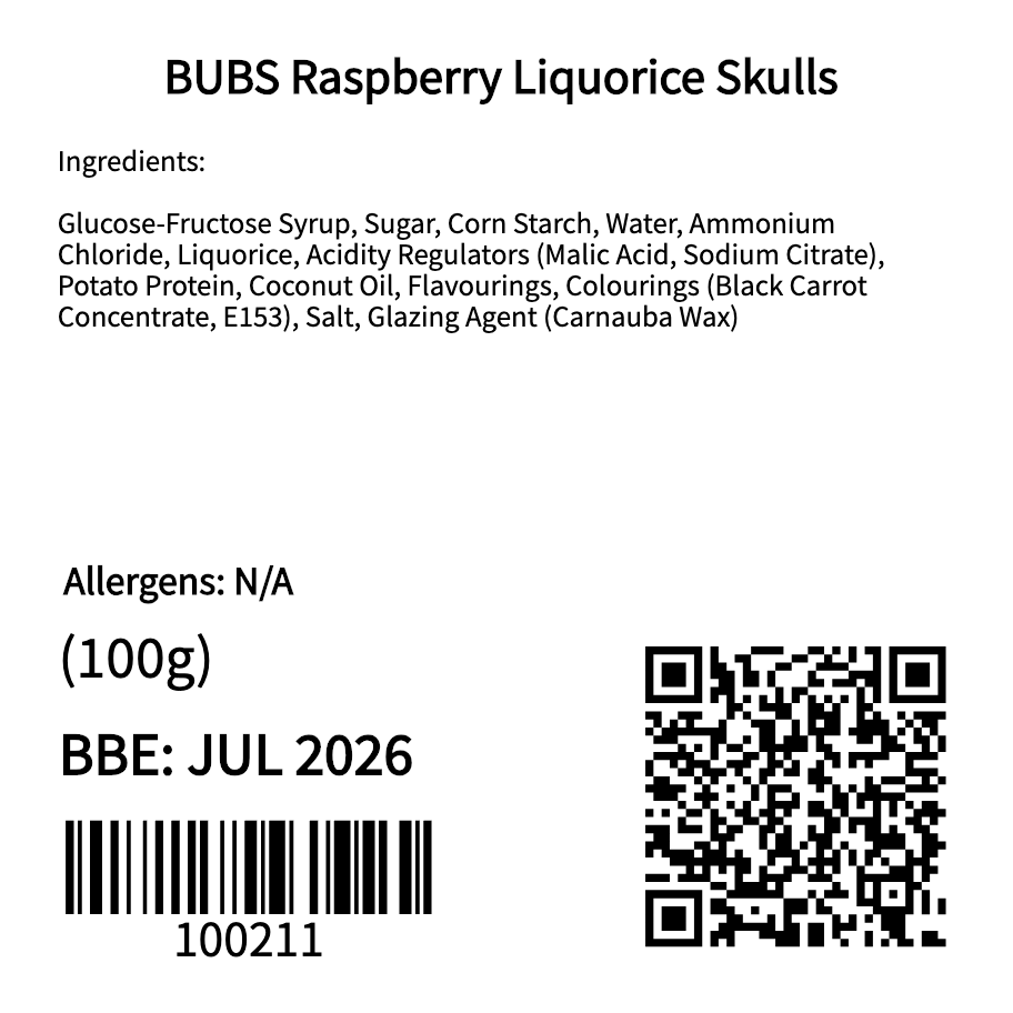 BUBS Raspberry Liquorice Skulls offer a taste experience like never before. Enjoy a balance of sweet raspberry and kicking aniseed flavour, giving these treats a unique taste. No wonder BUBS are so appreciated. With the perfect chewiness and duo flavour, these skull-shaped treats can be enjoyed by all.