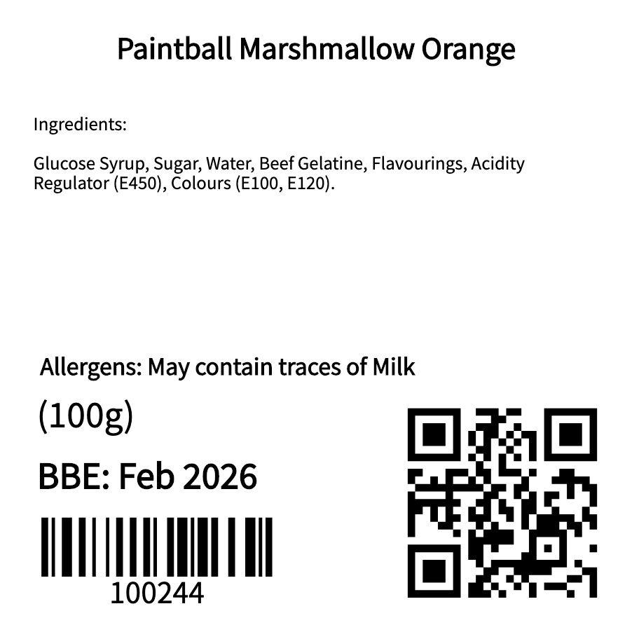 Add some colour to your pick-n-mix displays with Kingsway Orange Paint Balls. Bright orange coloured marshmallows with a tasty peach and vanilla flavour and coated in a sweet orange sugar.